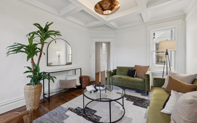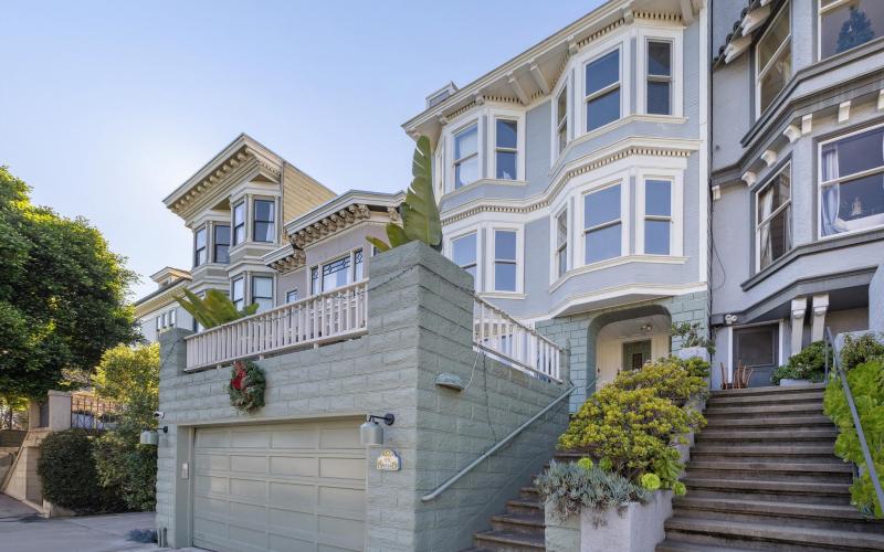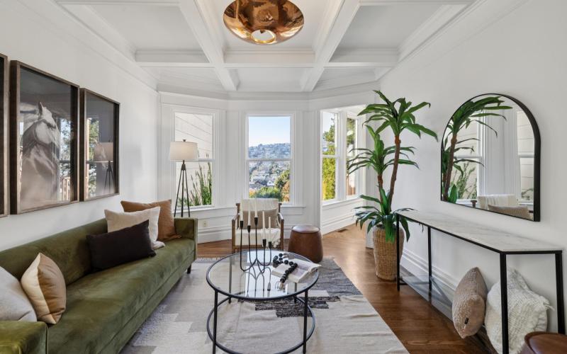 Perched at the highest point of Dolores Street, this Edwardian two-story residence offers premier Noe Valley living at the crossroads of the Mission and Dolores Heights. Southern and eastern views greet you from the front, while serene western outlooks unfold to the rear from a rare key lot with nearly unencumbered vistas. Part of a two-unit building, the residence spans almost 2,000 square feet and features four bedrooms and two full baths, presenting an exceptional opportunity for immediate enjoyment or a complete re-imagining. Rich with original period character, the home showcases hardwood floors, classic wainscoting, built-in cabinetry, pocket doors, and an ornate decorative fireplace. A gracious eat-in kitchen with extensive custom cabinetry and new appliances, a dedicated laundry room, and a living room highlighted by coffered ceilings create inviting spaces for everyday living and entertaining. A spectacular shared front deck overlooks the iconic Dolores Street palm trees, offering a quintessential San Francisco backdrop. Additional highlights include a gorgeous shared yard, storage, office nook, entry room, and parking. Just steps from 24th Street’s vibrant restaurants, bars, boutiques, and public transportation, this is an outstanding offering in one of San Francisco’s most sought-after neighborhoods.
